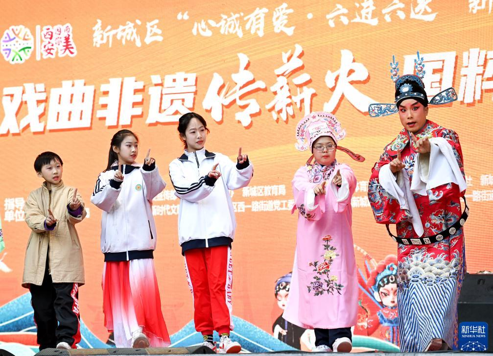 當日,西安市新城區“戲曲非遺傳薪火 國粹文化立自信”新時(shí)代文明實(shí)踐進(jìn)校園活動(dòng)在西安易俗社文化街區舉行。西安市新城區西一路小學(xué)的百余位師生聆聽(tīng)秦腔經(jīng)典曲目,感受傳統戲曲文化魅力。