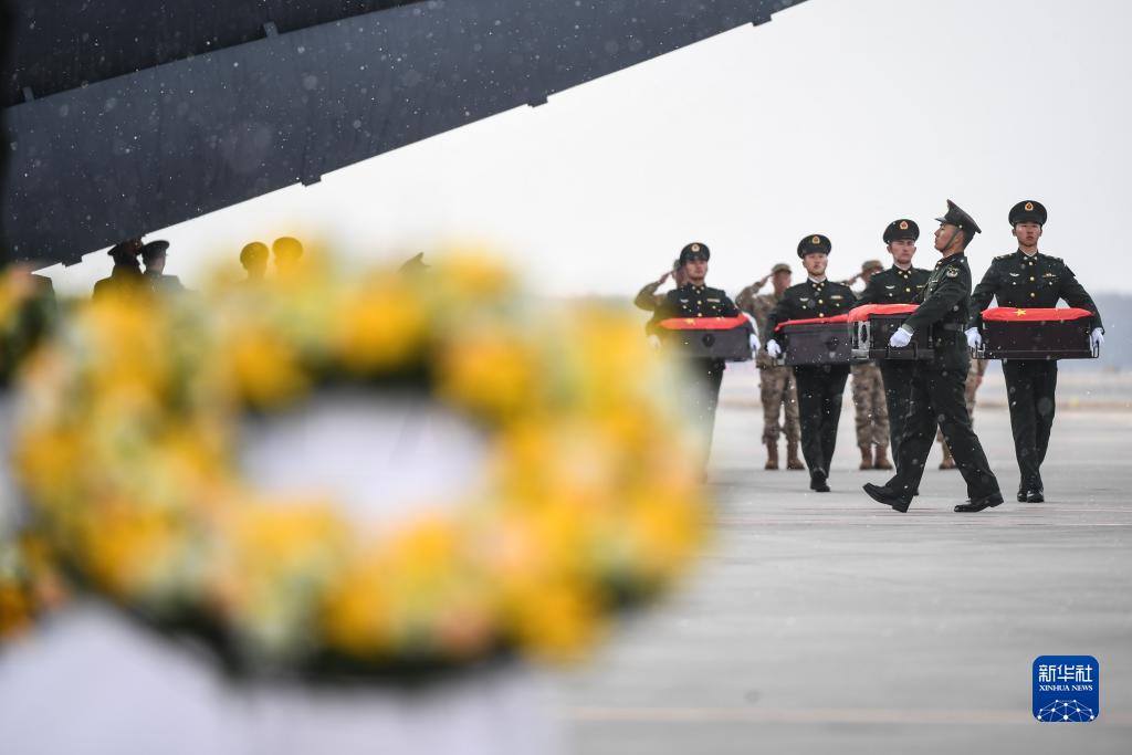 當日,第十批在韓中國人民志愿軍烈士遺骸由我空軍專(zhuān)機護送從韓國接回遼寧沈陽(yáng),25位志愿軍烈士遺骸及相關(guān)遺物回到祖國。