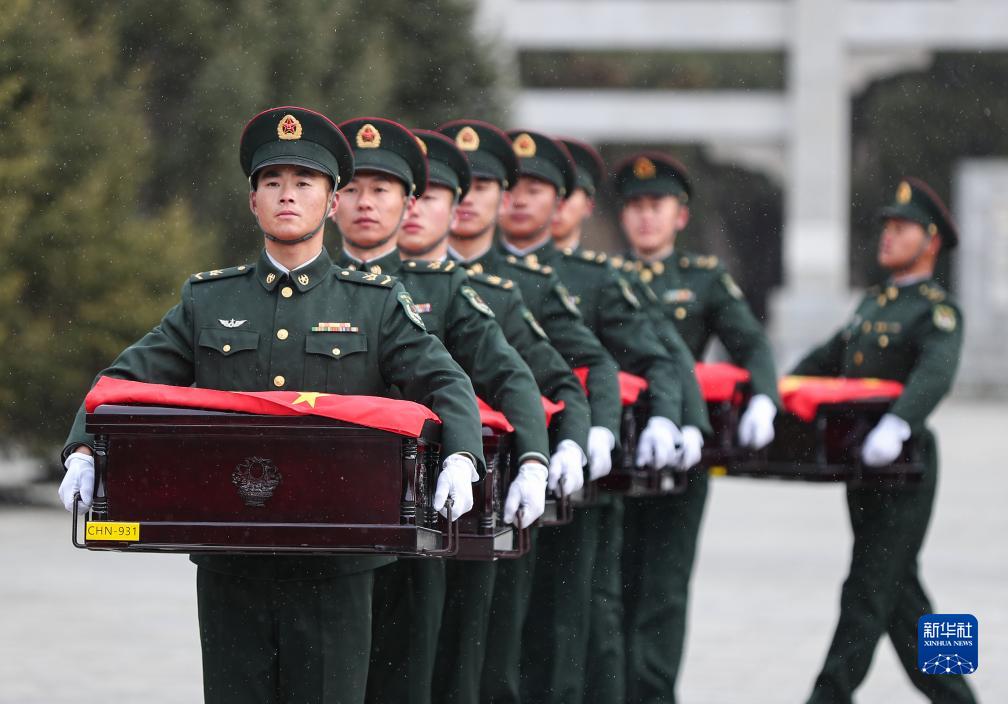 11月23日,志愿軍烈士遺骸抵達沈陽(yáng)抗美援朝烈士陵園。