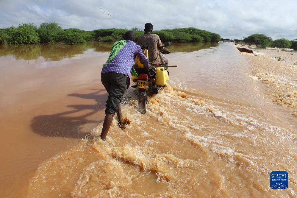 11月22日,在肯尼亞加里薩,行人涉水前進(jìn)。