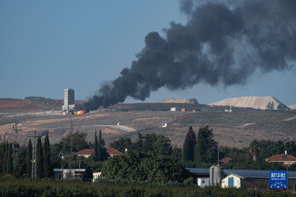 這張11月23日從黎以邊境以色列一側拍攝的照片顯示,黎巴嫩南部地區遭以軍襲擊后升起濃煙。