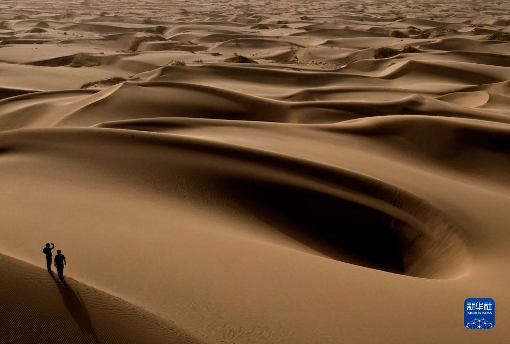 新疆喀什地區麥蓋提縣的沙漠風(fēng)光(9月7日攝,無(wú)人機照片)。