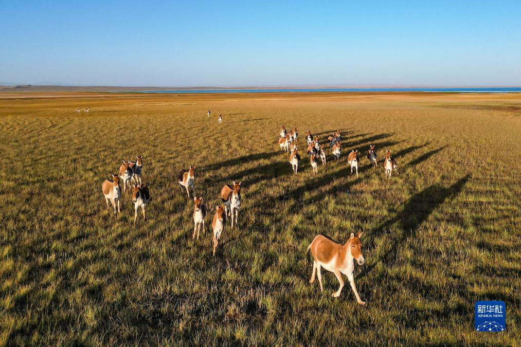 阿爾金山國家級自然保護區的藏野驢(9月12日攝,無(wú)人機照片)。