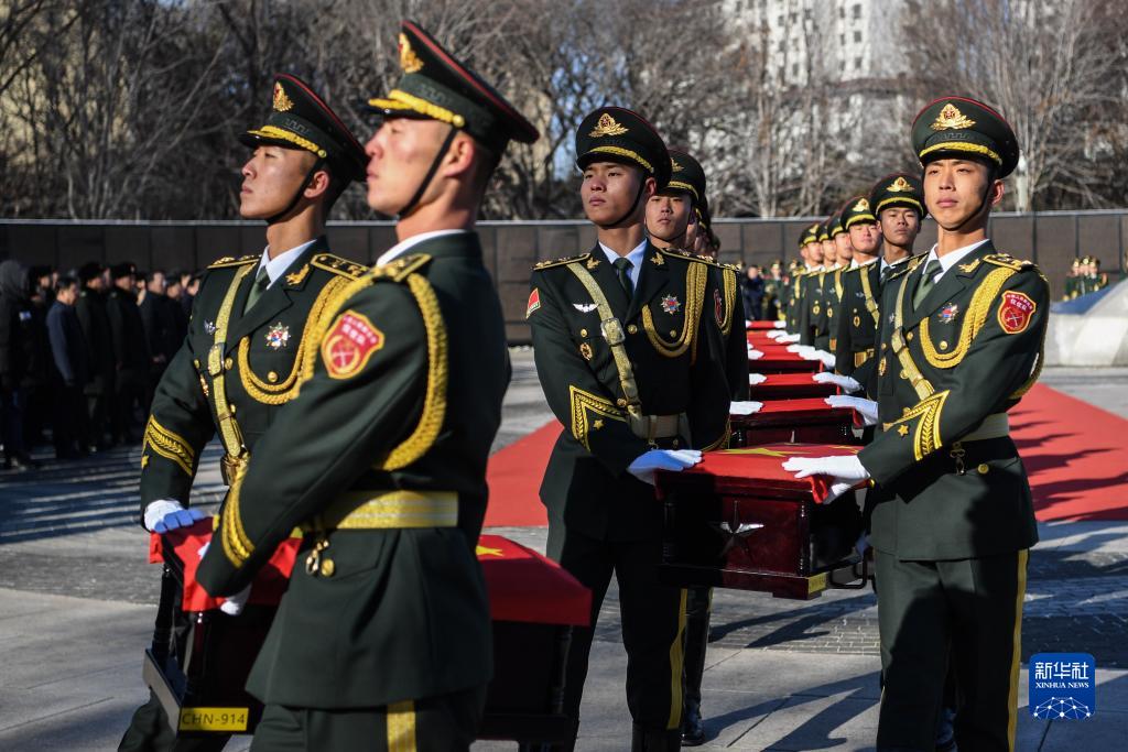 11月24日,第十批在韓中國人民志愿軍烈士遺骸安葬儀式在沈陽(yáng)抗美援朝烈士陵園舉行,25名志愿軍烈士英靈在抗美援朝戰爭勝利70周年之際,回到中華大地安息。