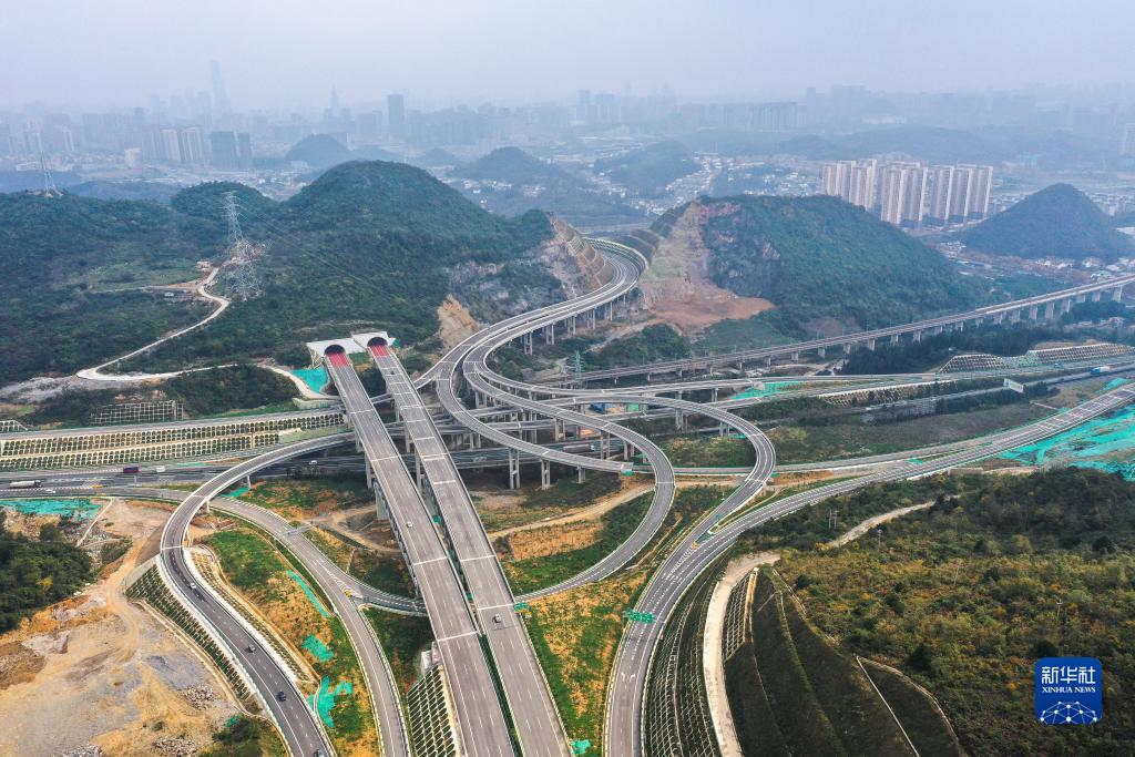 11月24日,車(chē)輛在貴金高速公路竇官樞紐互通上行駛(無(wú)人機照片)。