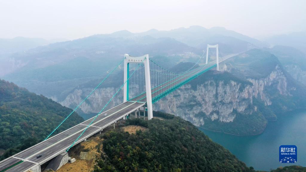 11月24日,車(chē)輛從貴金高速公路金烽烏江大橋上通過(guò)(無(wú)人機照片)。