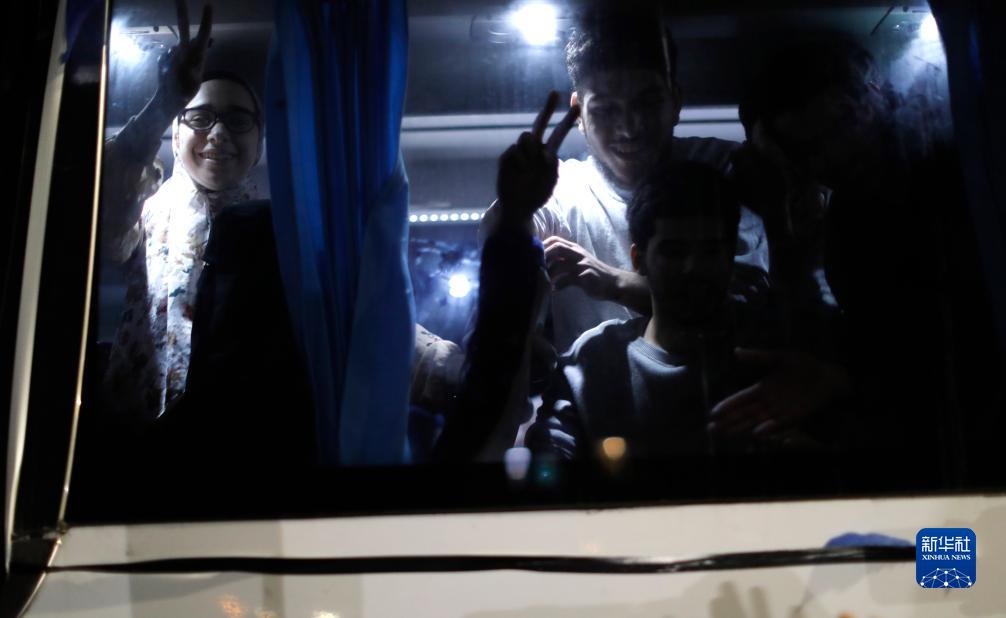 11月24日,在約旦河西岸城市拉姆安拉附近的拜圖尼亞鎮,獲釋的巴勒斯坦人乘車(chē)離開(kāi)。