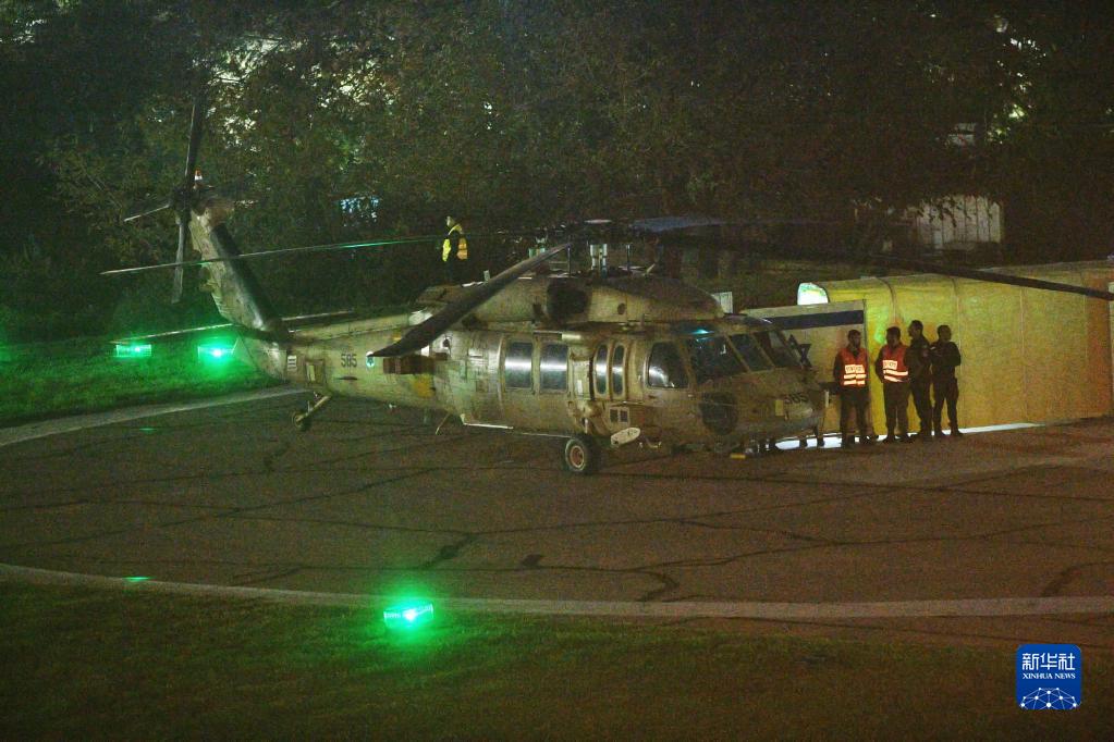 11月24日,搭載獲釋人員的直升機抵達以色列佩塔提克瓦一所醫院。