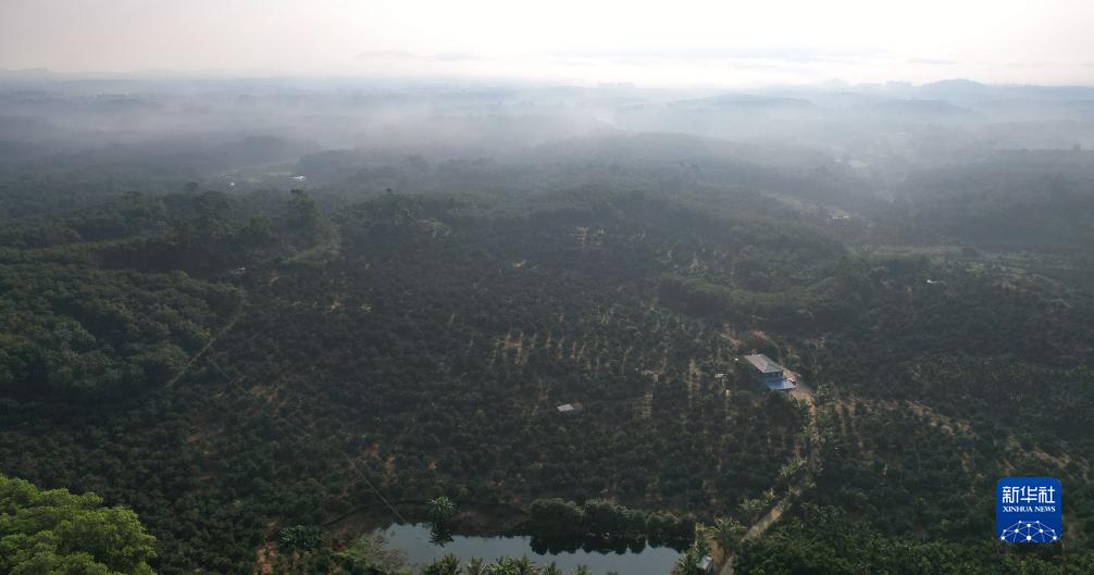 航拍位于海南省瓊中黎族苗族自治縣的一處綠橙種植基地(11月24日攝,無(wú)人機照片)。