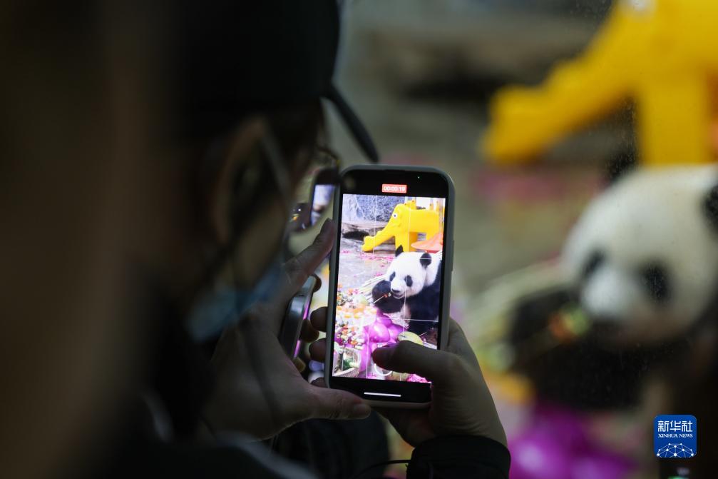 11月25日,游客在拍攝大熊貓“貢貢”。