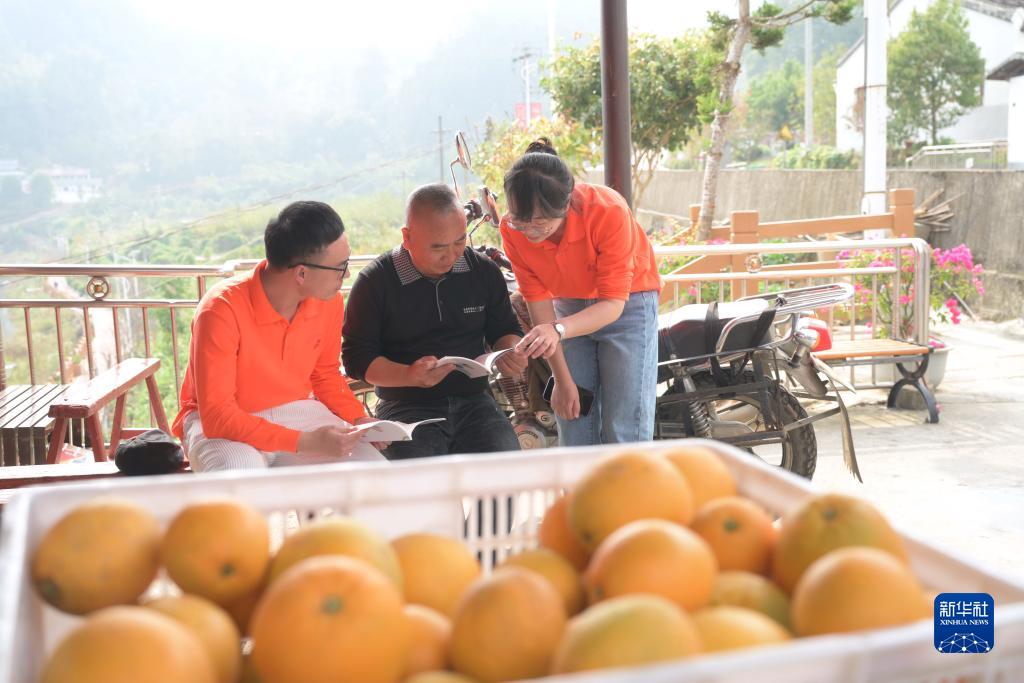11月24日,在古田縣黃田鎮金翼村,寧德市直機關(guān)“四下基層”實(shí)踐隊干部陳巧(右)等向村民林芳尤(中)宣傳醫療衛生知識。
