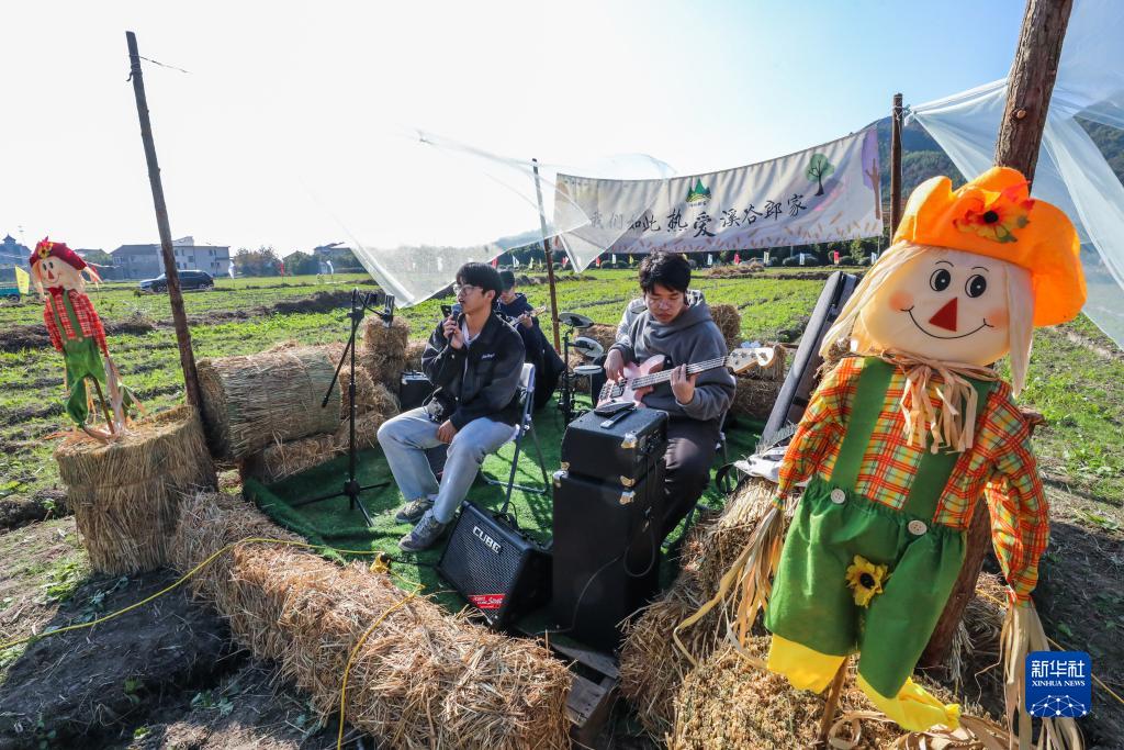 11月25日在杭州市臨安區郎家村拍攝的稻田文化節現場(chǎng)表演。