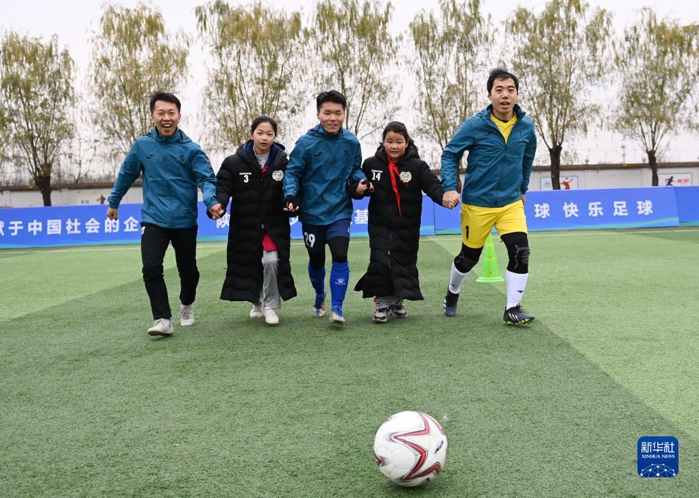 11月25日,受助學(xué)生和三星足球隊球員在鄉村學(xué)校公益足球課堂啟動(dòng)儀式上參與趣味足球活動(dòng)。