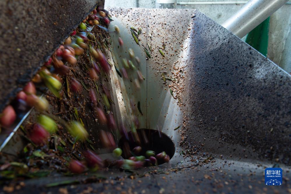 這是11月24日在西班牙卡塞雷斯一處橄欖油工廠(chǎng)拍攝的橄欖油制作過(guò)程。