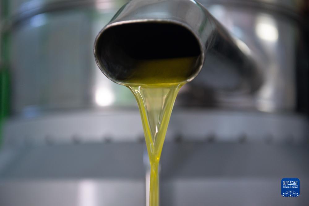 這是11月24日在西班牙卡塞雷斯一處橄欖油工廠(chǎng)拍攝的橄欖油。