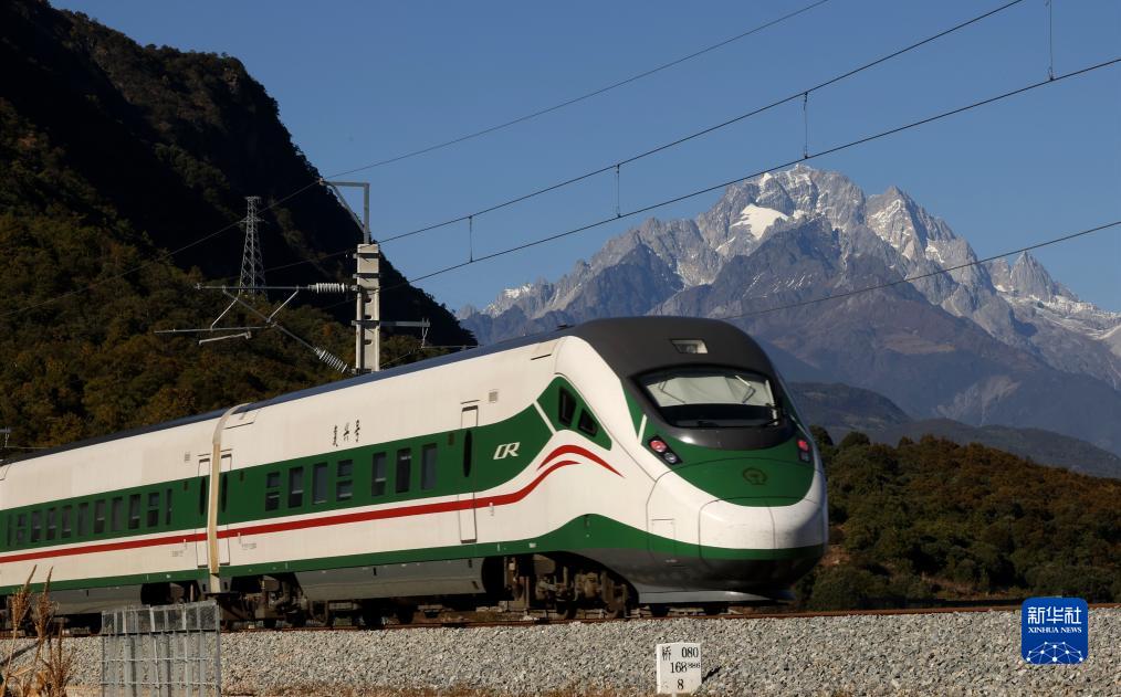 11月26日,列車(chē)從玉龍雪山腳下駛過(guò)。