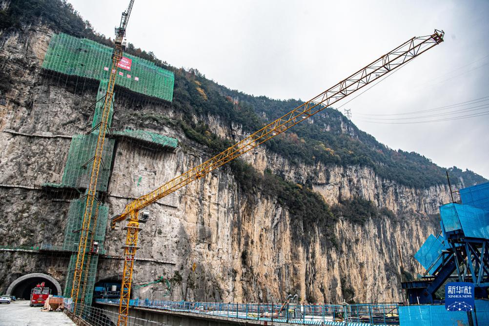 11月26日,在位于重慶市酉陽(yáng)土家族苗族自治縣龔灘鎮的阿蓬江大橋施工建設現場(chǎng),工人正在現場(chǎng)作業(yè)。