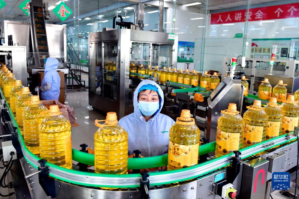 11月26日,在山東香馳糧油有限公司,工作人員在食用油生產(chǎn)線(xiàn)值守。