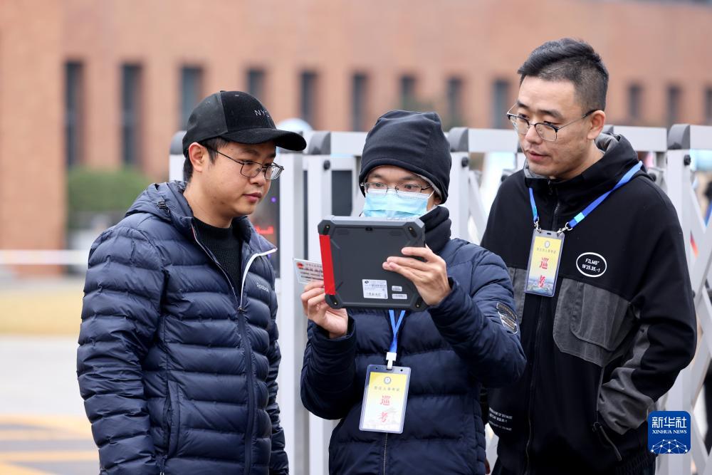 11月26日,在山東省棗莊市薛城區龍潭實(shí)驗學(xué)??键c(diǎn),工作人員在核對考生信息。