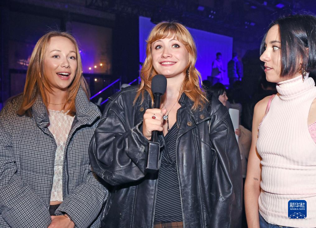 11月25日,在美國紐約,觀(guān)眾西爾薇·施泰格(中)接受采訪(fǎng)。她告訴記者,五條人是她見(jiàn)過(guò)最好的樂(lè )隊之一,她首次觀(guān)看就非常喜歡他們的表演。