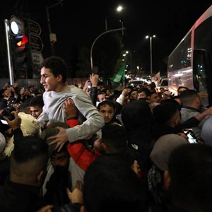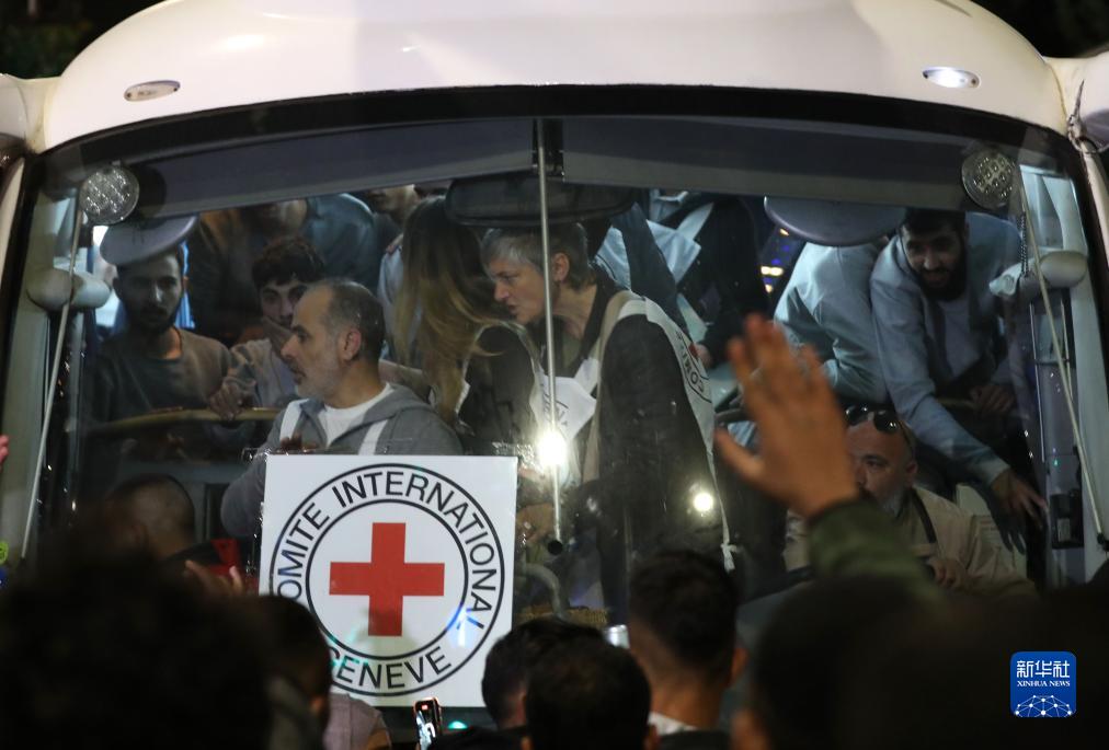 11月26日,載有獲釋巴勒斯坦被關(guān)押人員的大巴抵達約旦河西岸城市拉姆安拉。