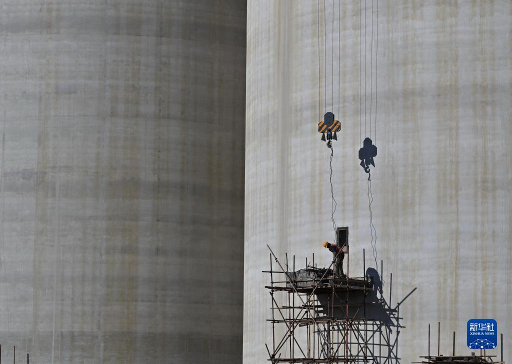 11月26日,工人在河北省唐山市豐潤區糧食安全應急儲備及食品深加工全鏈化綜合生產(chǎn)基地項目建設工地施工。