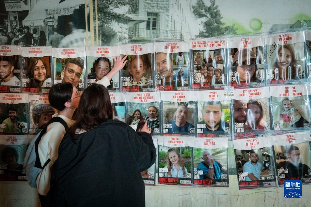 11月27日,在耶路撒冷,人們查看被扣押人員海報。