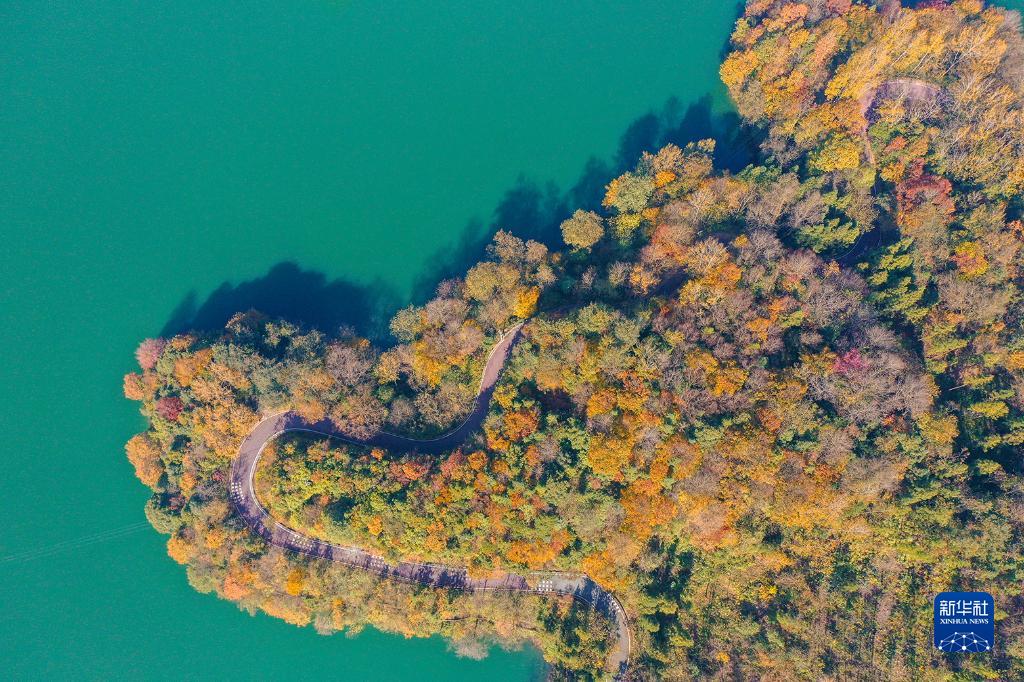 11月27日,在貴州省畢節市百里杜鵑管理區鵬程街道移山湖拍攝的景色(無(wú)人機照片)。