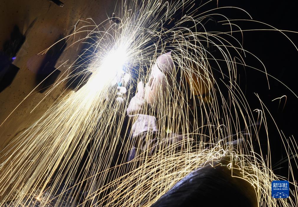11月27日,工人在深中通道海底沉管隧道內進(jìn)行切割作業(yè)。