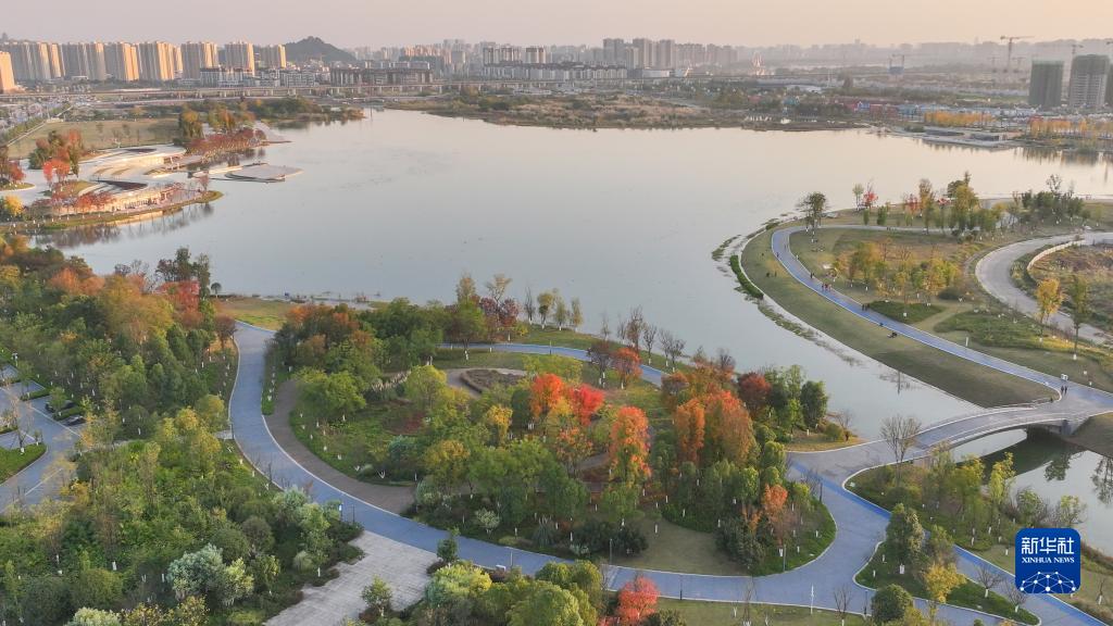 11月27日拍攝的四川省遂寧市永盛湖公園(無(wú)人機照片)。