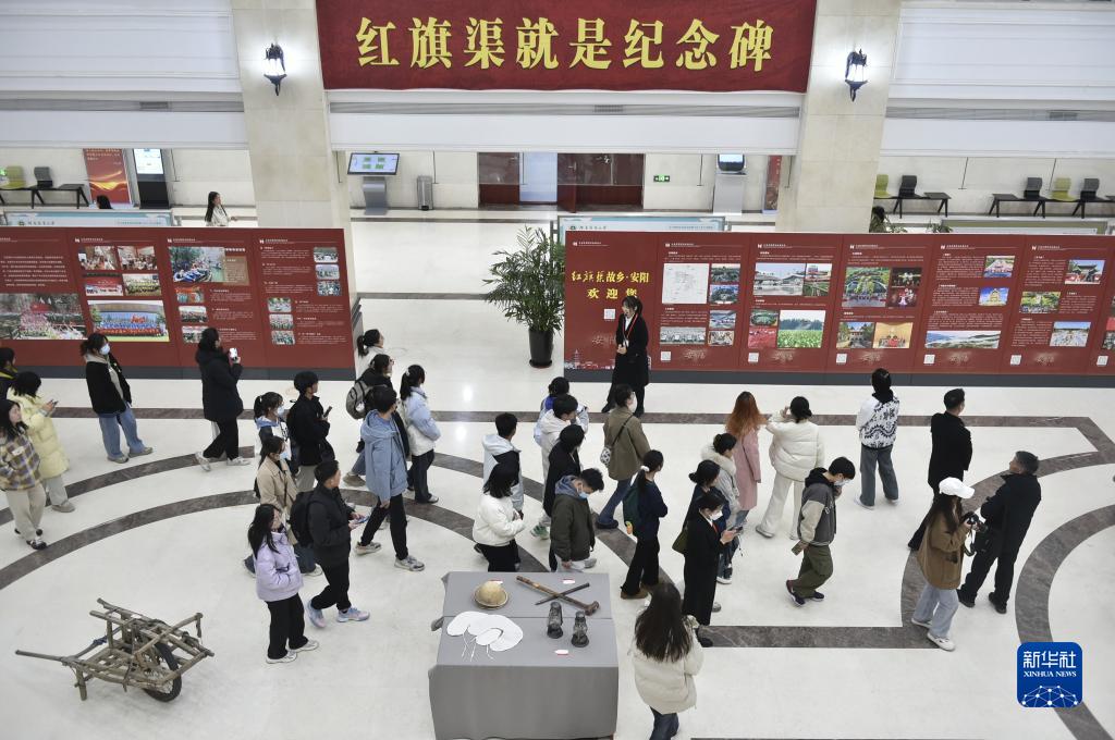 11月28日,河南農業(yè)大學(xué)的學(xué)生在參觀(guān)紅旗渠精神主題展覽。