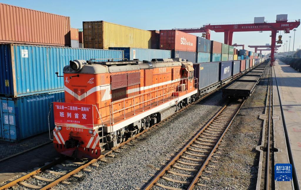 今年11月23日,江蘇連云港。一列裝載著(zhù)生活用品、家用電器等貨物的中歐班列由此首發(fā)、飛馳而去,將于20天后抵達莫斯科沃爾西諾站。