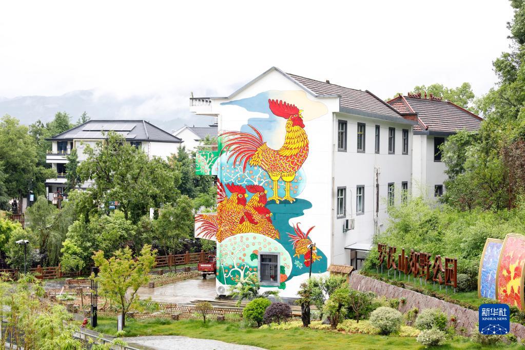 這是浙江衢州市柯城區溝溪鄉余東村建筑墻壁上的農民畫(huà)“大公雞”(5月11日攝)。新華社發(fā)