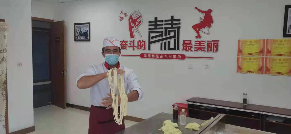 馬福才在東鄉縣職業(yè)技術(shù)學(xué)校學(xué)習拉面技術(shù)。(受訪(fǎng)者供圖)