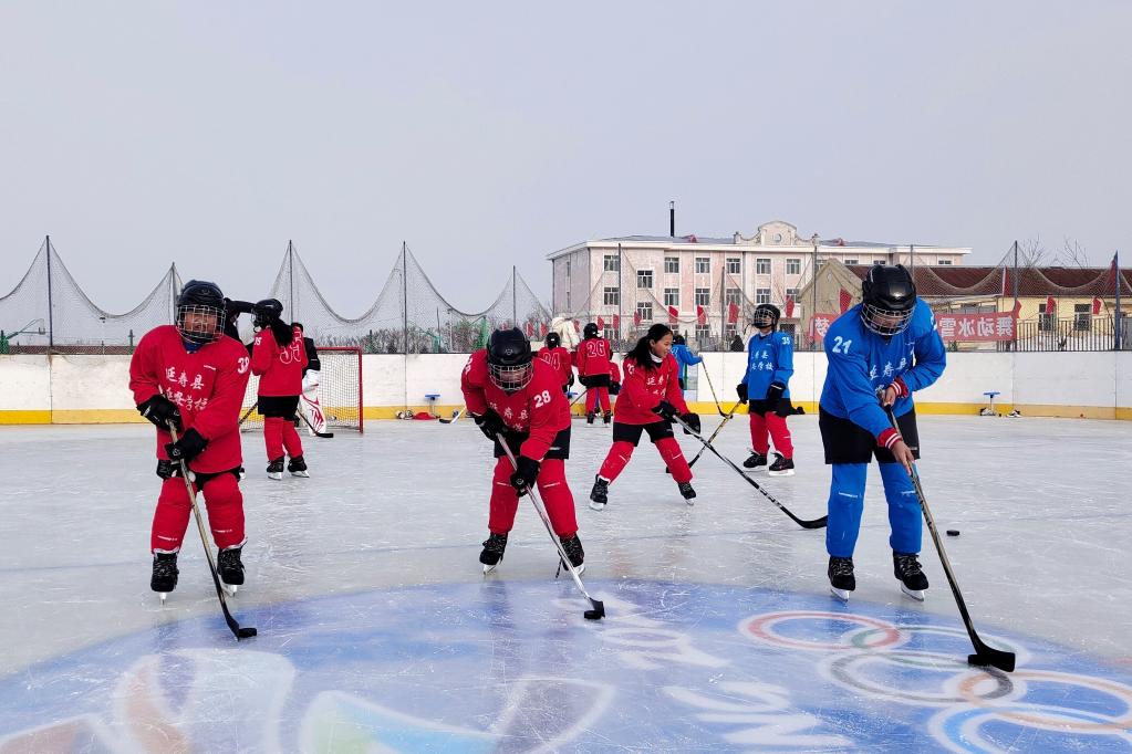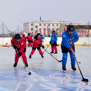哈爾濱市延壽縣延安學(xué)校開(kāi)展冰球活動(dòng)。(受訪(fǎng)者供圖)