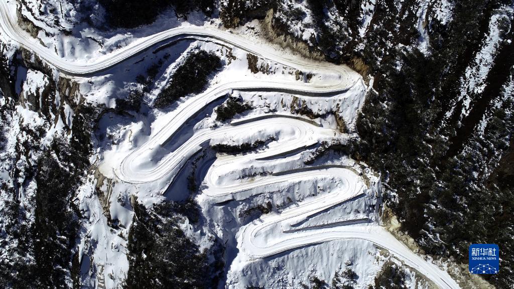 西藏洛扎縣境內懸崖峭壁間的通村公路(1月17日攝,無(wú)人機照片)。新華社記者 韓曦樂(lè ) 攝