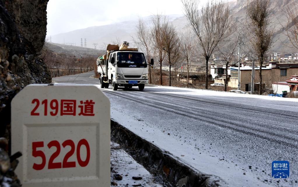 西藏洛扎縣境內的國道與道路旁的民居(1月19日攝)。新華社記者 陳尚才 攝