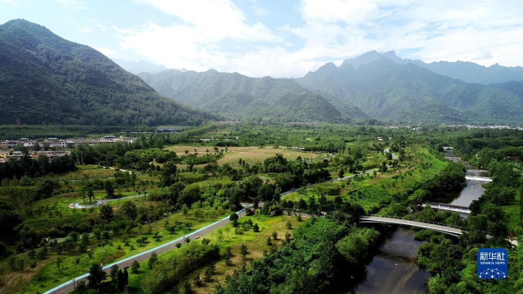 這是陜西省西安市長(cháng)安區秦嶺違建別墅“群賢別業(yè)”拆除后建設的秦嶺和諧森林公園(2019年7月26日攝,無(wú)人機照片)。新華社記者 劉瀟 攝