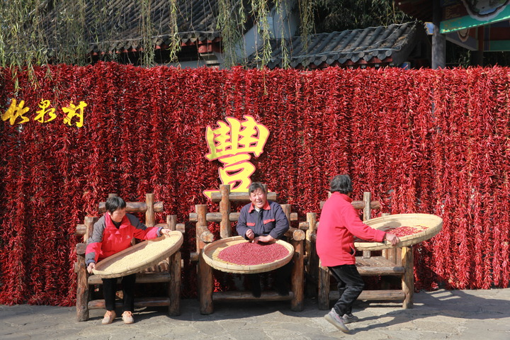 2021年11月13日,臨沂市沂南縣銅井鎮竹泉村村民在展示晾曬糧食。新華社記者 范長(cháng)國 攝