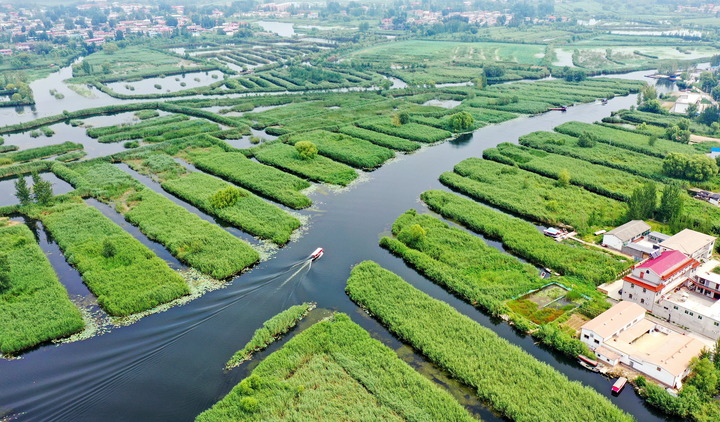 2021年8月14日,船舶在雄安新區白洋淀內行駛。新華社記者 牟宇 攝