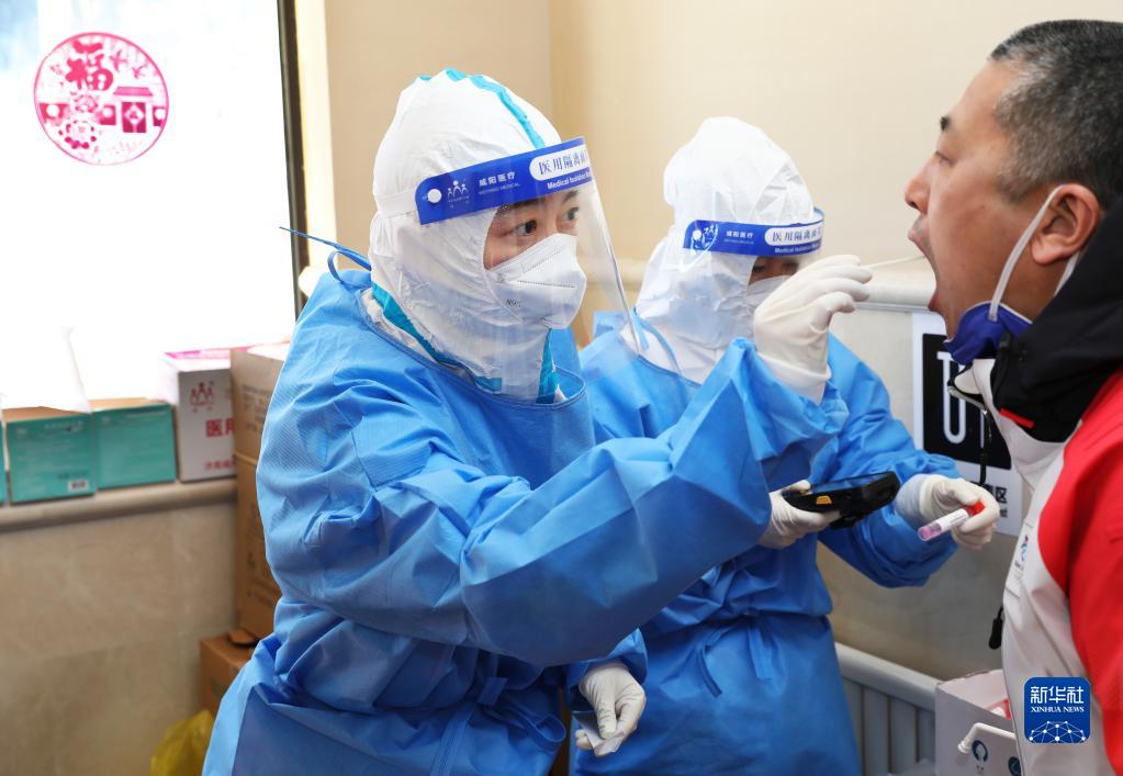 圖為醫務(wù)工作者在北京2022年冬奧會(huì )張家口賽區云頂場(chǎng)館群住宿區開(kāi)展核酸檢測工作(2022年2月1日攝)。新華社發(fā)(武殿森 攝)