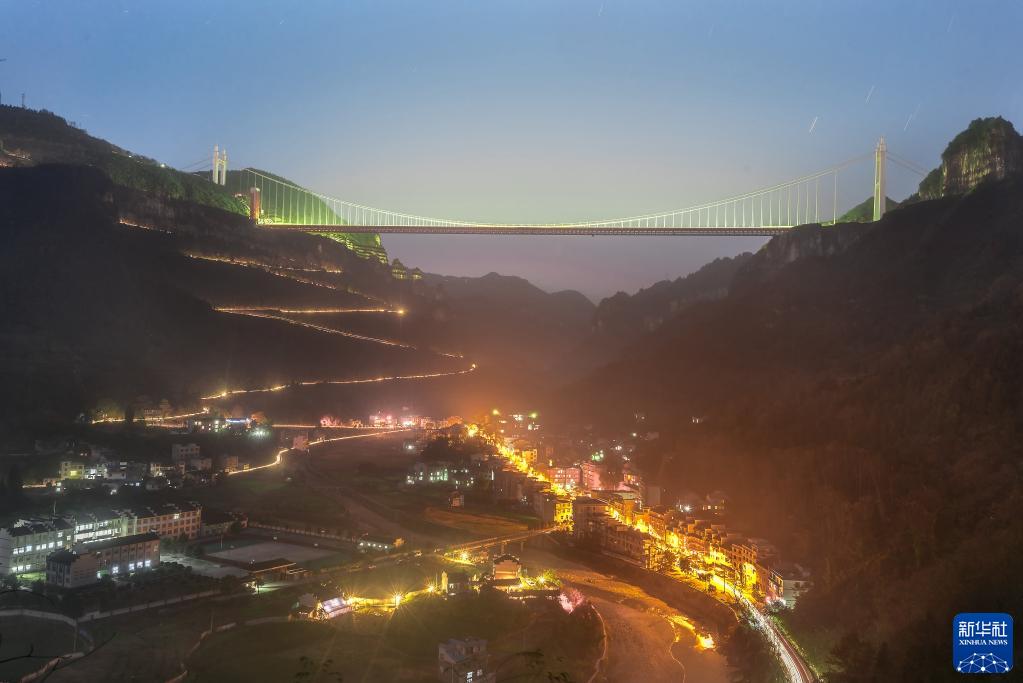 2016年12月5日拍攝的矮寨大橋夜景。新華社發(fā)(尚林 攝)