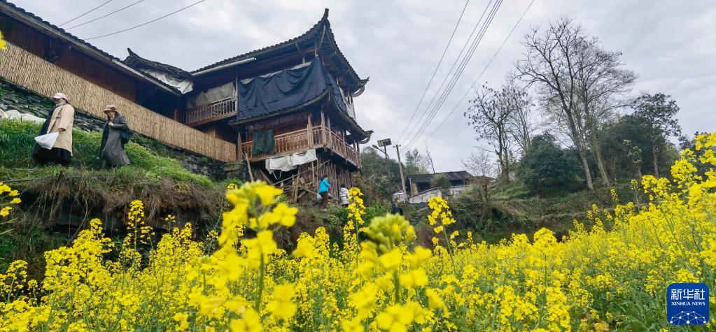 3月27日,游客在家庭村游覽。新華社記者 趙眾志 攝