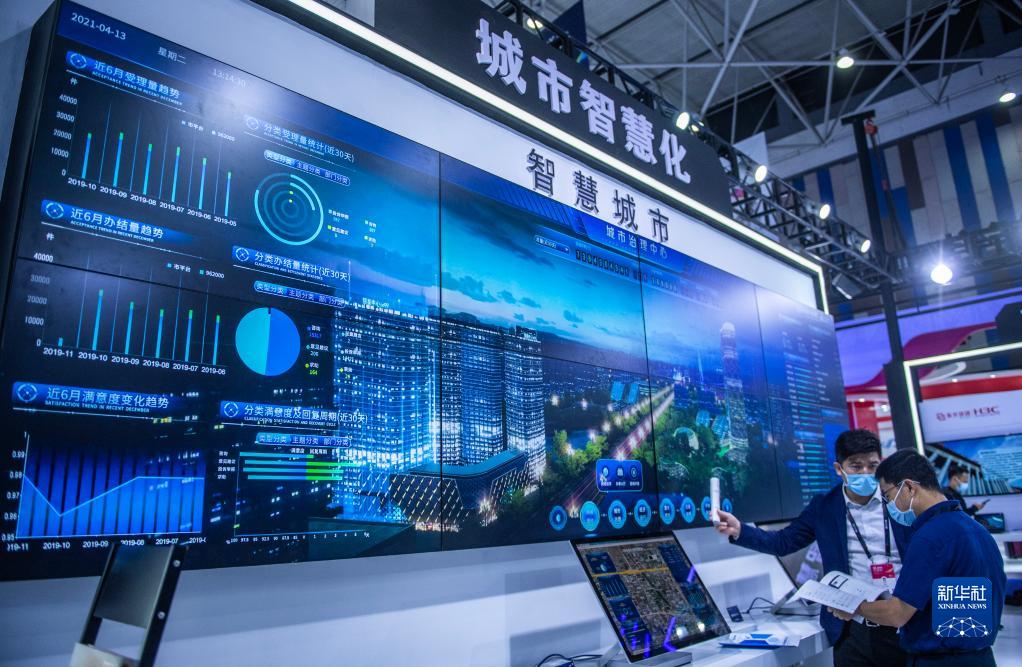 參會(huì )者在2021中國國際大數據產(chǎn)業(yè)博覽會(huì )上了解智慧城市治理中心(2021年5月26日攝)。新華社記者 陶亮 攝