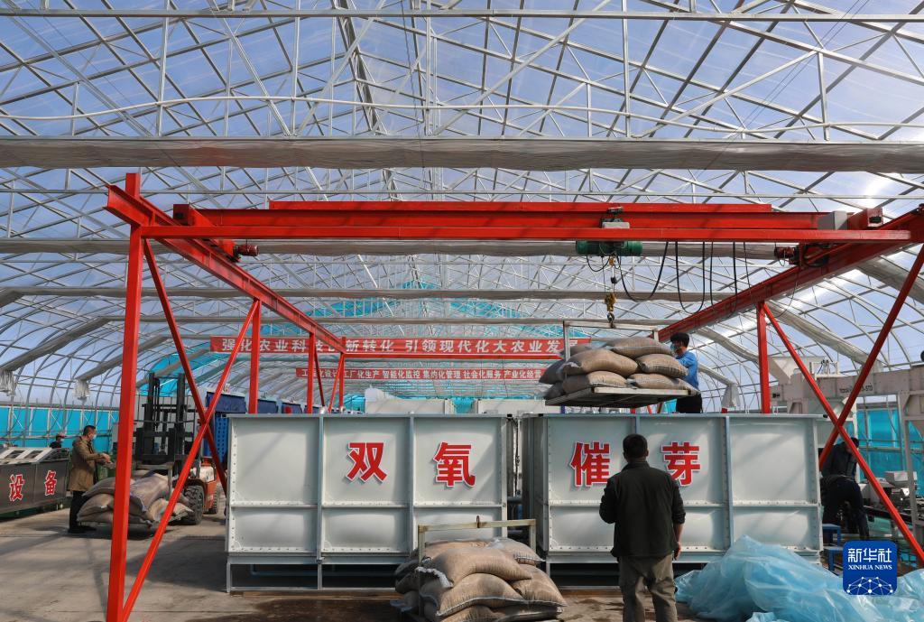 在北大荒集團洪河農場(chǎng)有限公司,工作人員用智能雙氧催芽技術(shù)對水稻種子催芽(4月1日攝)。新華社發(fā)