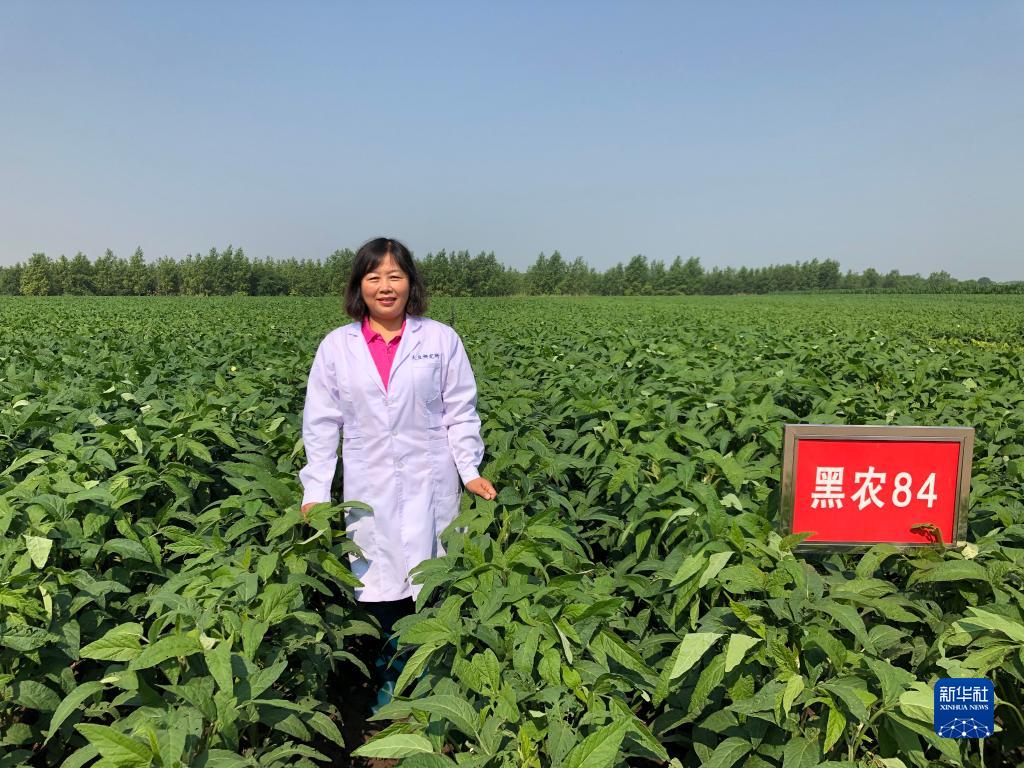 黑龍江省農科院大豆研究所育種專(zhuān)家欒曉燕在大豆田間(2020年7月9日攝)。新華社發(fā)