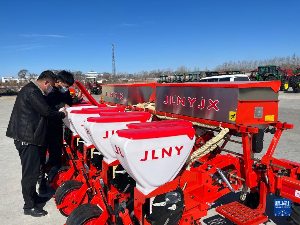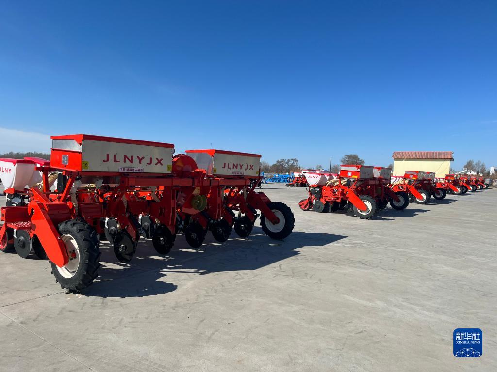 北大荒集團軍川農場(chǎng)有限公司新購進(jìn)的氣吸式精量播種機(4月12日攝)。新華社發(fā)