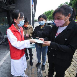 4月28日,在浙江湖州龍泉街道祥和社區幸福鄰里中心,龍泉街道社區衛生服務(wù)中心的醫生志愿者向人們發(fā)放職業(yè)病防治法宣傳手冊,普及健康知識。新華社記者 徐昱 攝