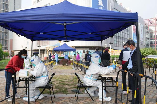4月29日,在北京市朝陽(yáng)區八里莊街道新城市廣場(chǎng)核酸采樣點(diǎn),工作人員為前來(lái)參加檢測的市民登記信息。當日,北京市朝陽(yáng)區開(kāi)展第三次擴大范圍核酸檢測。(新華社記者 鞠煥宗 攝)