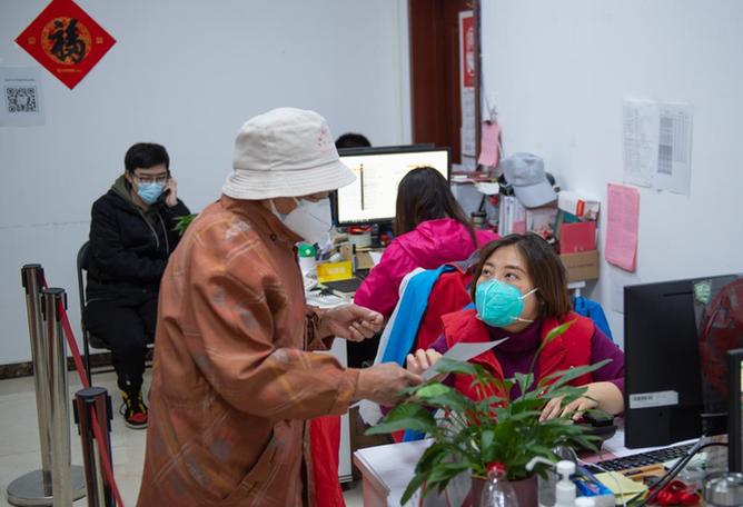 4月28日,在北京市朝陽(yáng)區和平村一社區居委會(huì )辦公室,工作人員王夏琳(前右)為一名有外出就醫需求的老人辦理相關(guān)手續。(新華社記者 陳鐘昊 攝)